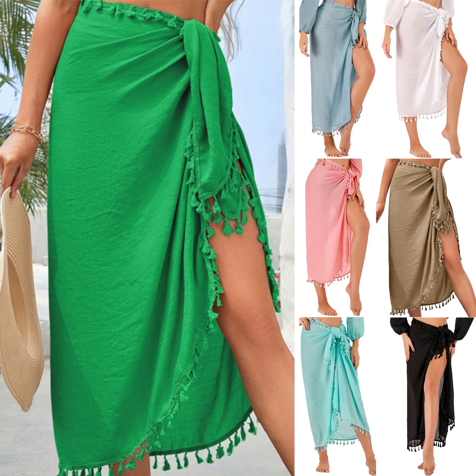 Women Swimsuit Cover Up Summer Solid Beach Wrap Skirt Swimwear Bikini Cover Up Skirt Beach Towel